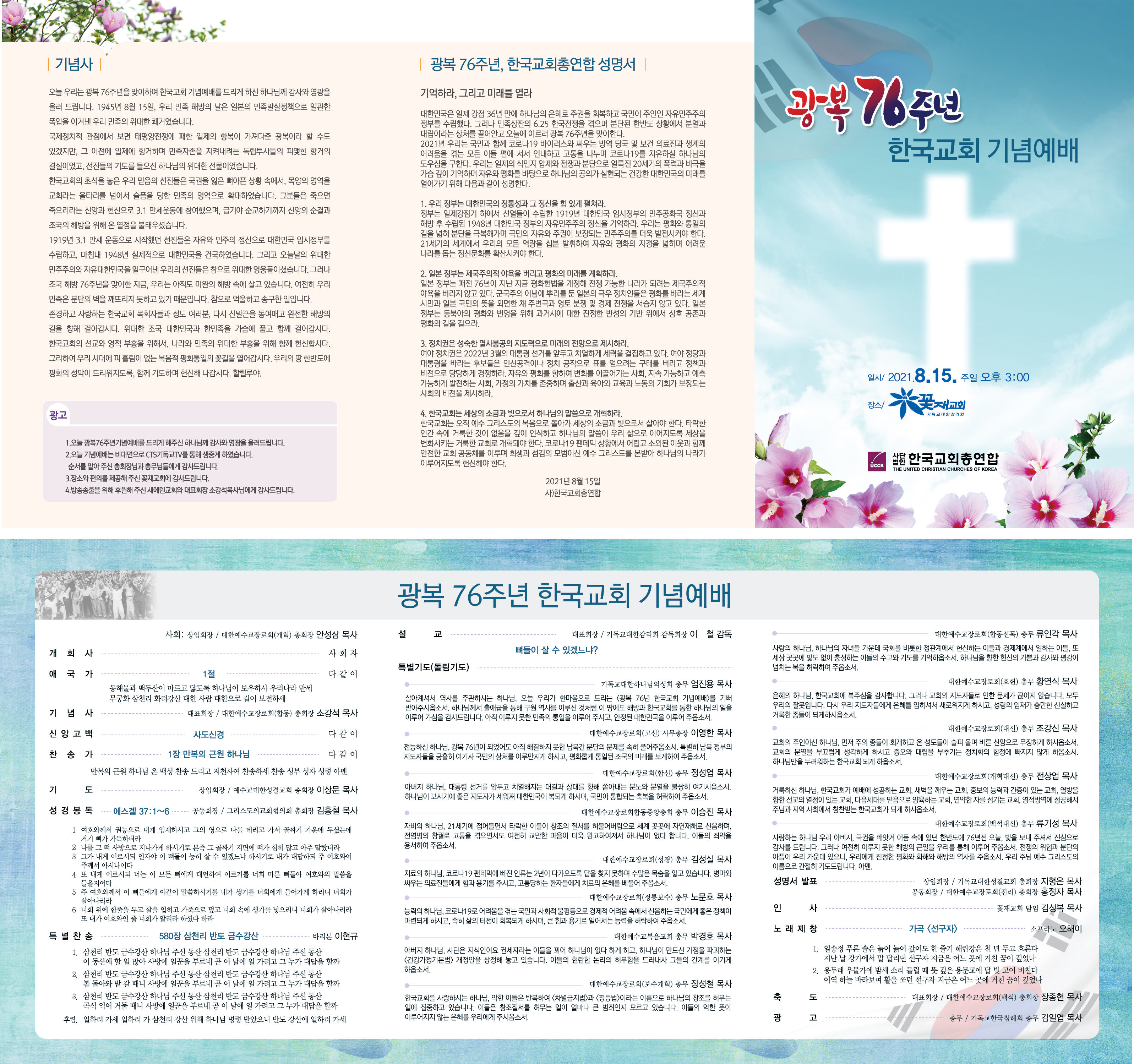 일시 : 2021년 8월 15일(주일) 오후 3시