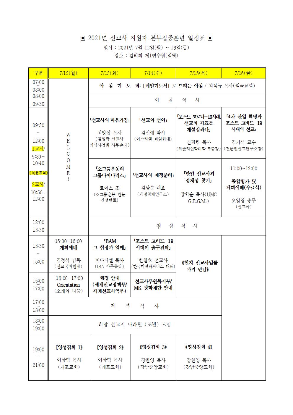 [선교] 선교사 지원자 본부집중훈련 공고 및 신청 안내(연기)