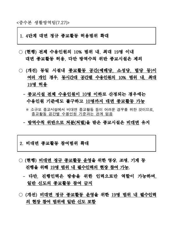 [정부] 수도권 거리두기 4단계 종교시설 방역수칙 개선