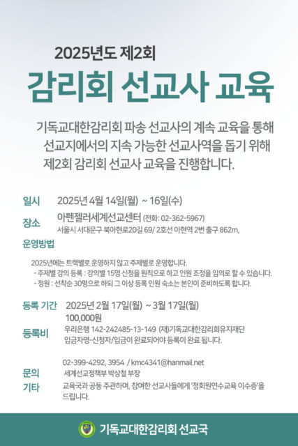 제2회 감리회 선교사 교육 안내 및 등록