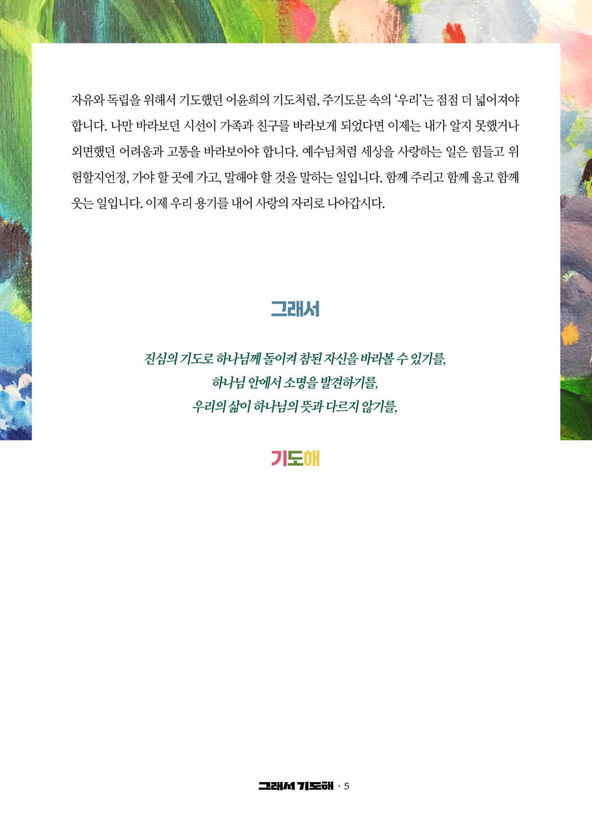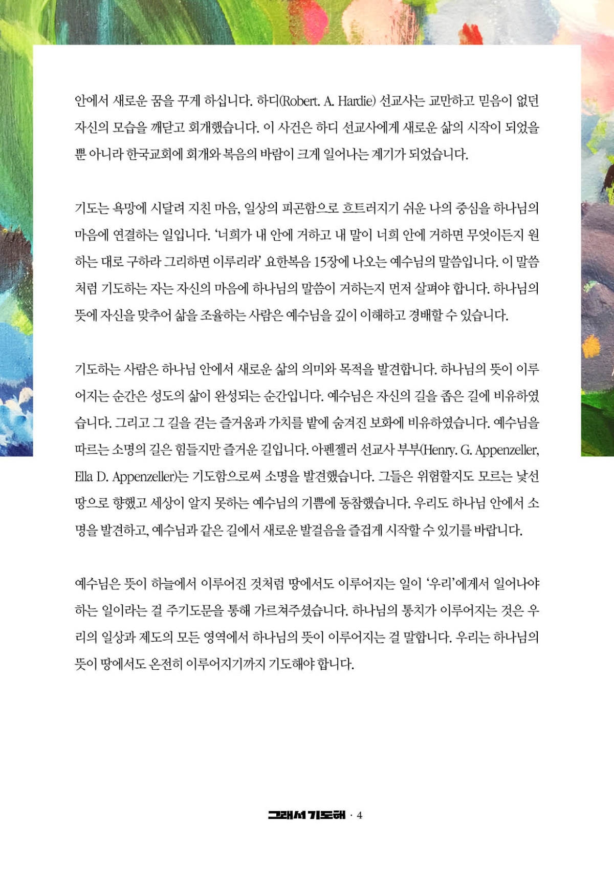어린이부와 함께 주제는 "기도"이고 역사 안에 살아 숨 쉬는 기도(하디, 아펜젤러와 엘라, 어윤희/서대문형무소에 유관순과 한 곳에 수감되었던/)를 통해서 나-우리(교회)-세상으로 나아가는 과정을 교재에 담았습니다.