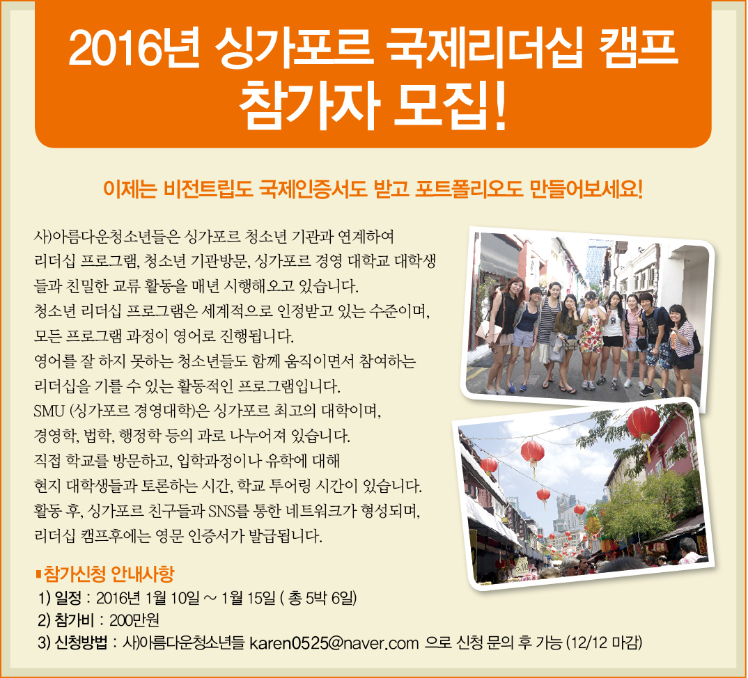 2016년 싱가포르 국제리더십 캠프 참가자 모집