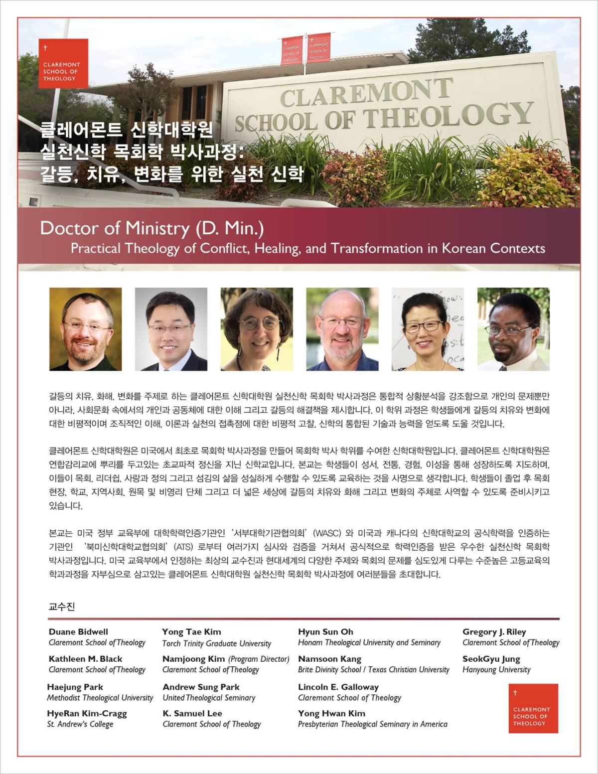 클레어몬트 신학대학원 실천신학 목회학 박사 과정에 관심 있는 분들의 많은 지원을 부탁드립니다.