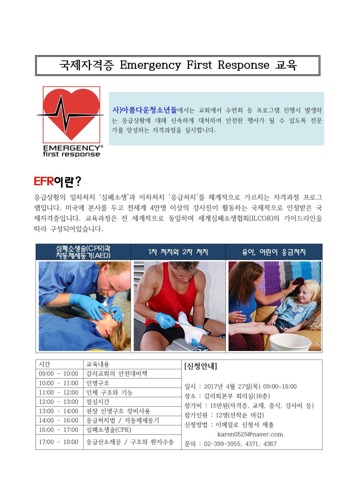 4월 국제자격증 EFR(응급처치) 교육안내
