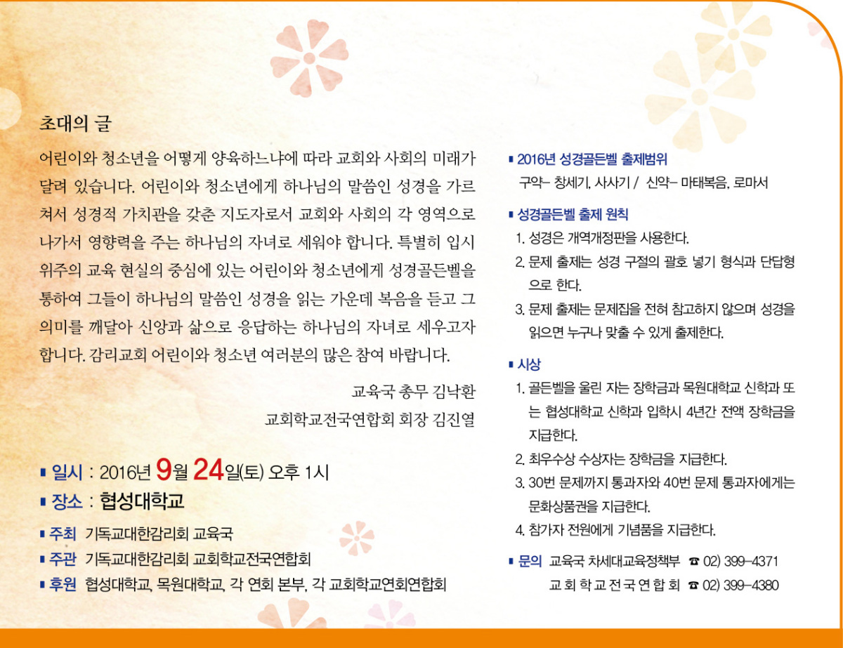 2016년 전국 어린이∙청소년 성경골든벨대회 안내