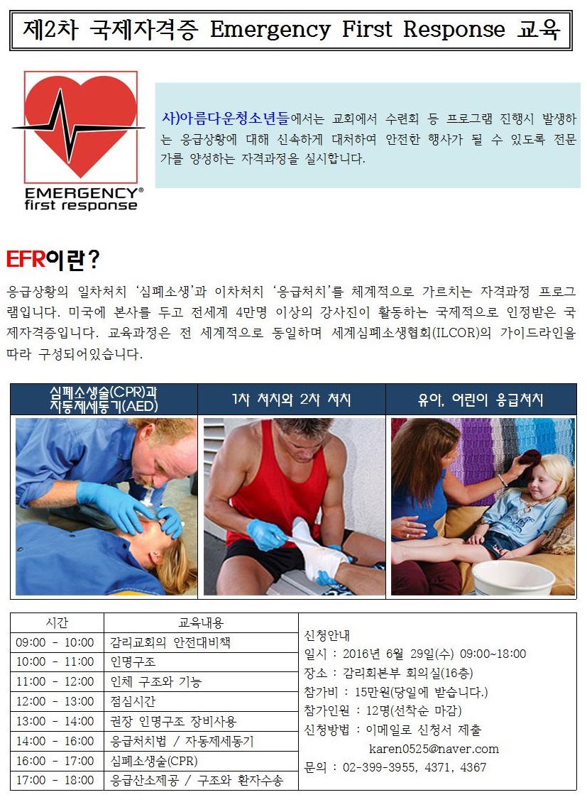 제2차 Emergency First Response 교육 안내