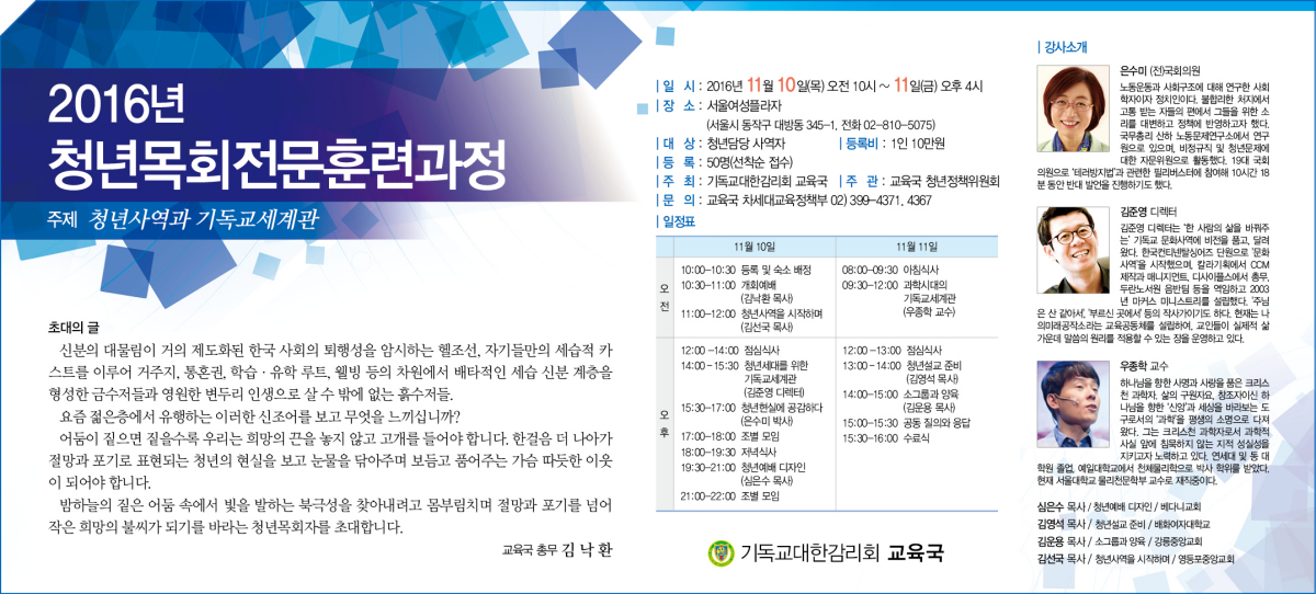 2016년 청년목회전문훈련과정 안내
