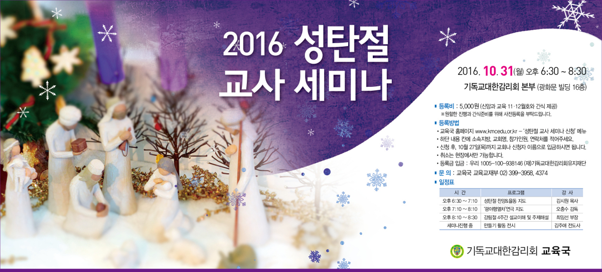 2016 성탄절 교사 세미나 일정 안내