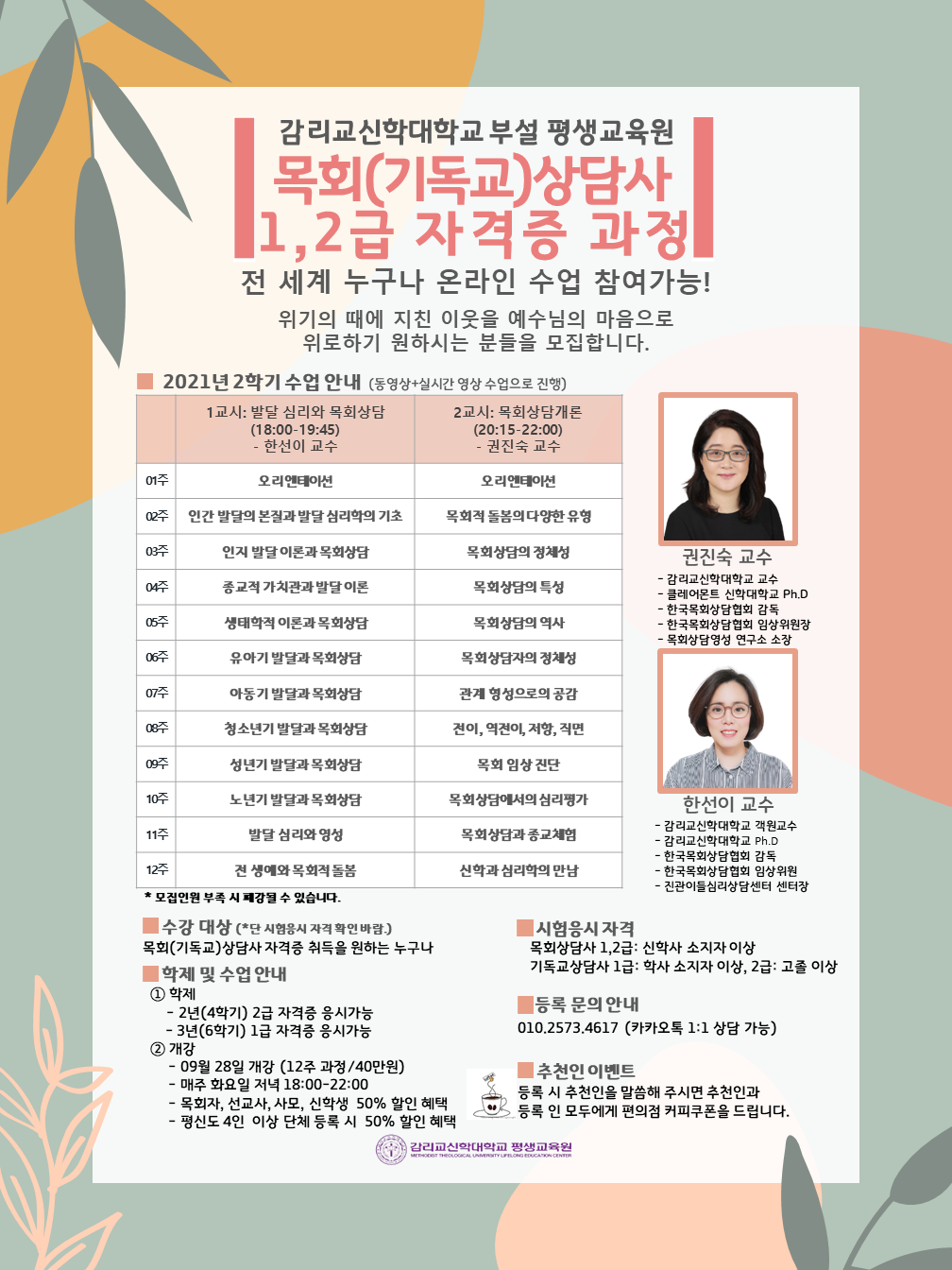 선교사 특전 목회상담사 1.2급 자격 취득 과정 소개합니다.