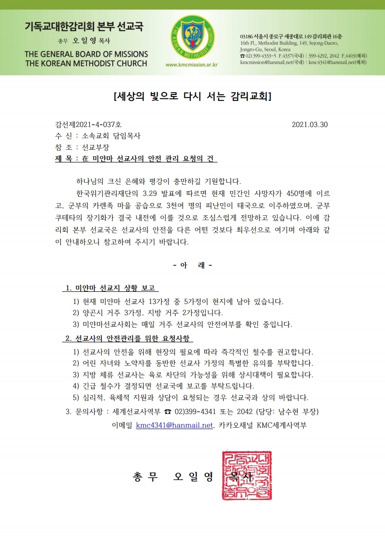 기독교대한감리회 제14대 세계선교사회장 선거 후보자 등록 공고