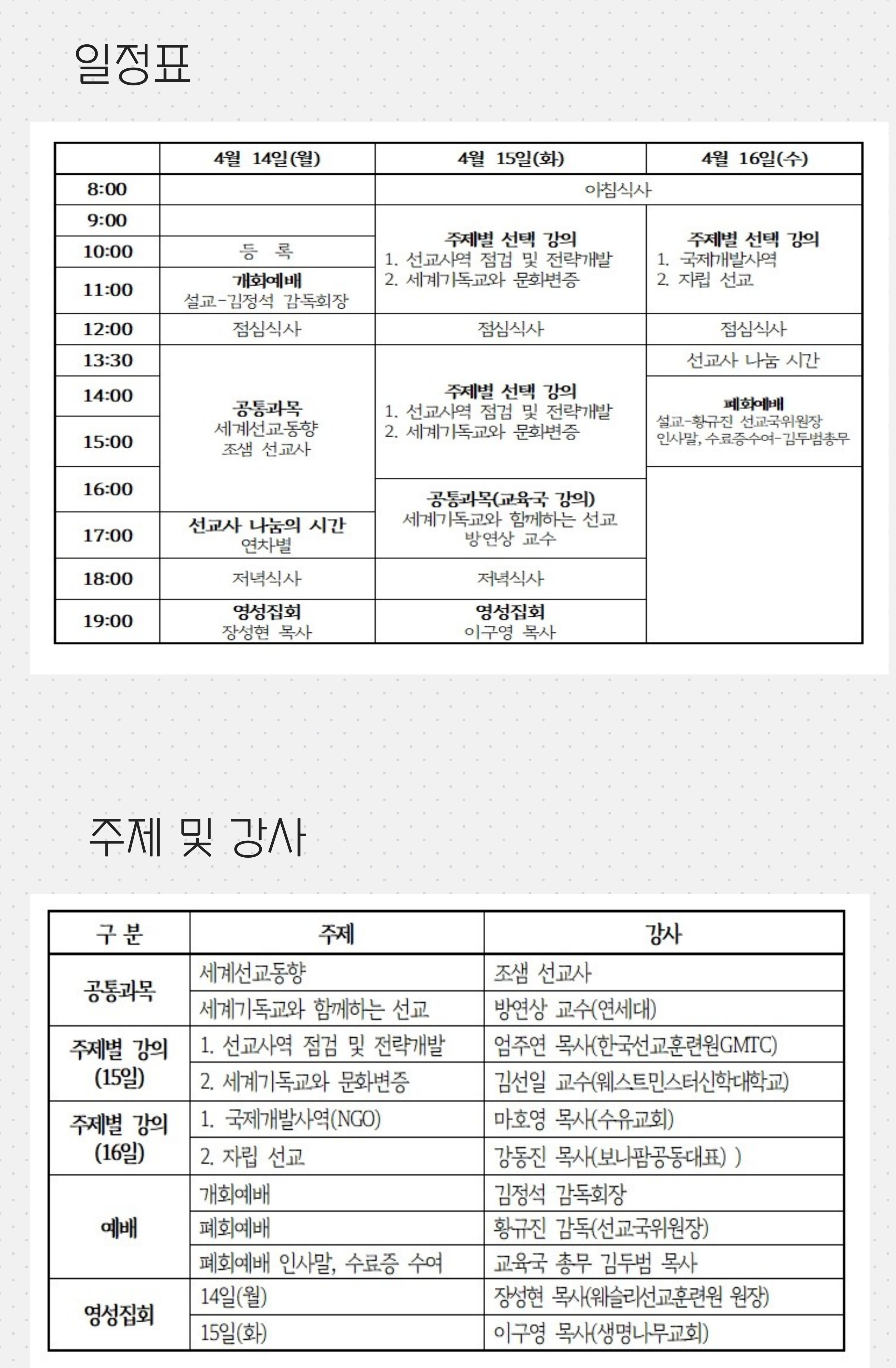▣ 문의 : 세계선교정책부(☎02-399-4292, kmc4341@hanmail.net)