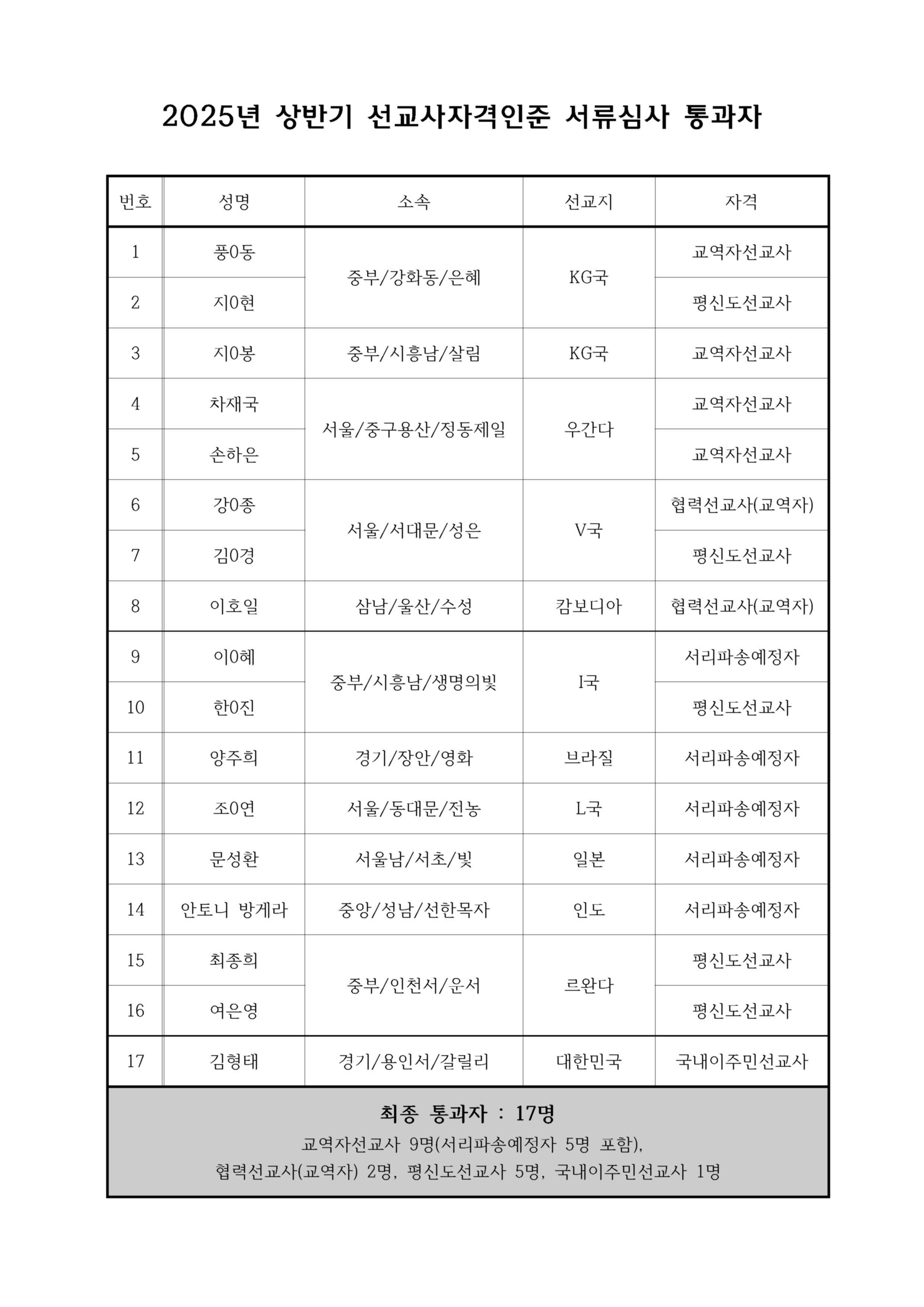 [세계선교사역부] 2025 상반기 선교사자격인준심사 서류통과자 공지 및 면접심사 안내