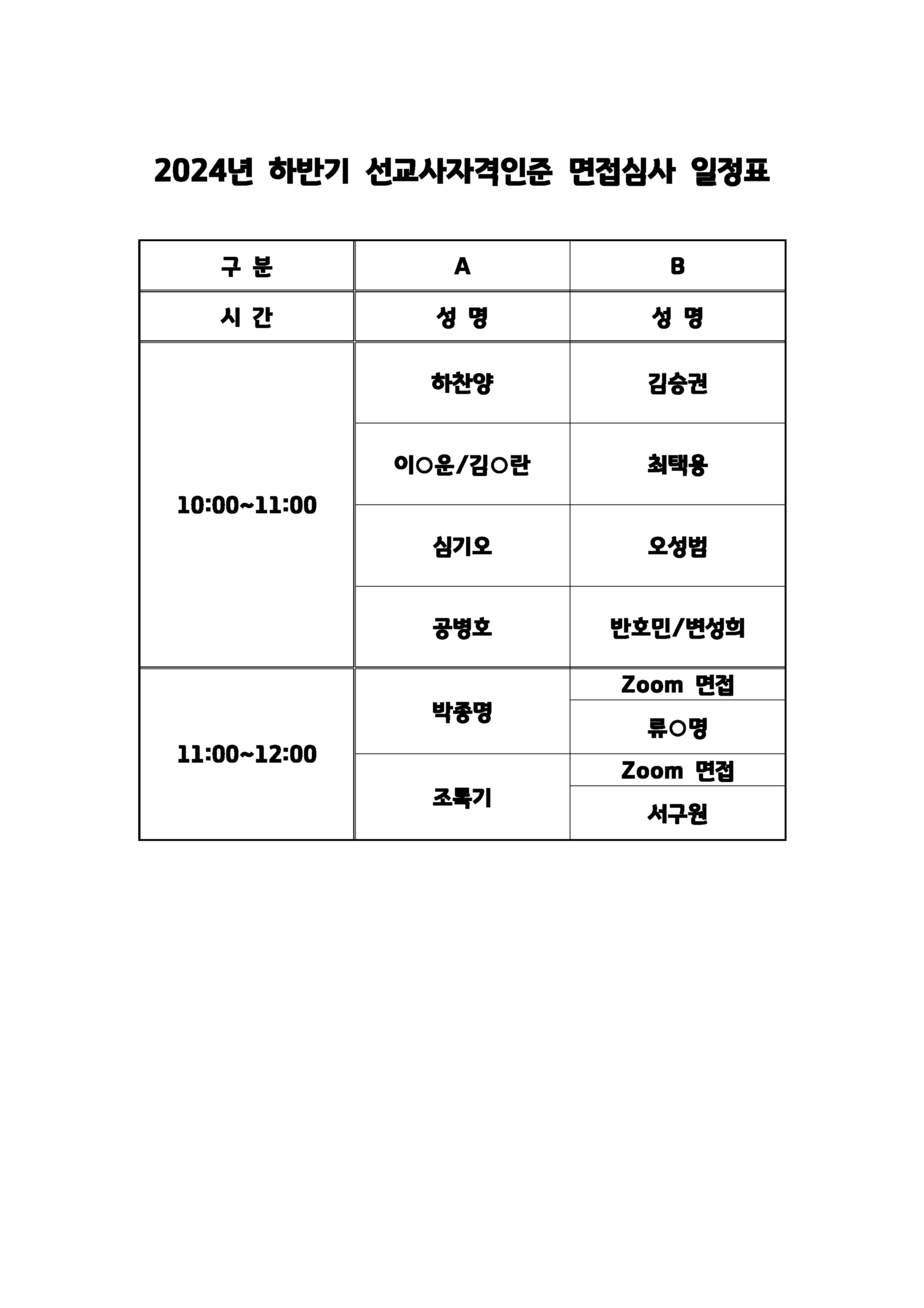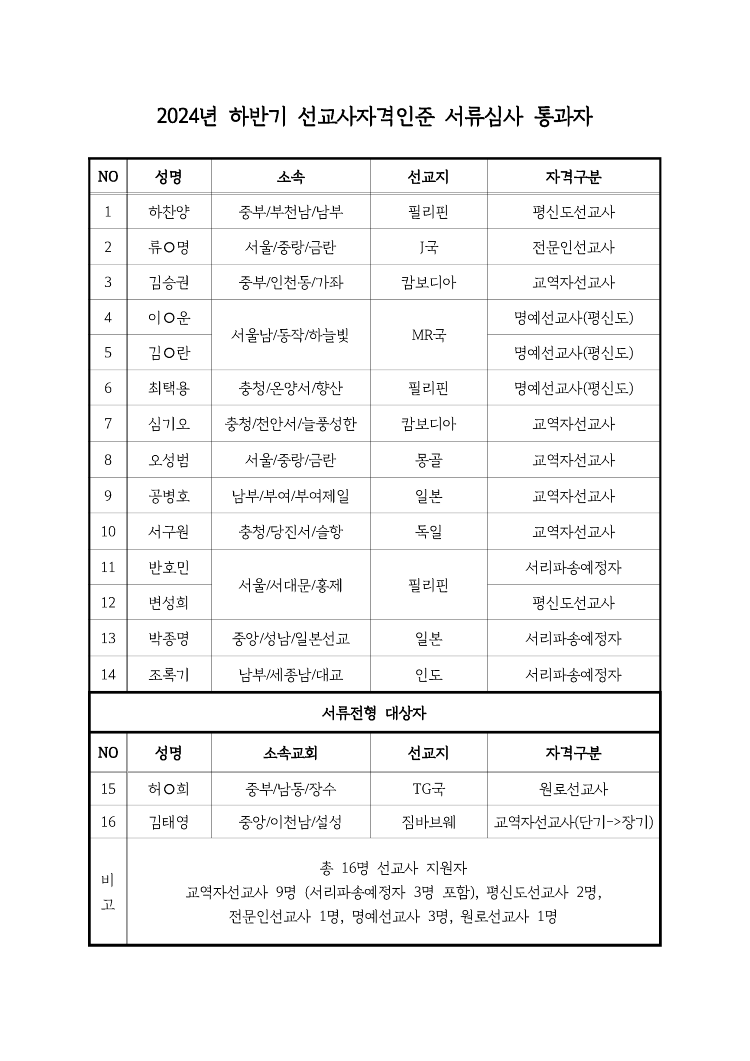 [세계선교사역부] 2024 하반기 선교사자격인준심사 서류통과자 공지 및 면접심사 안내