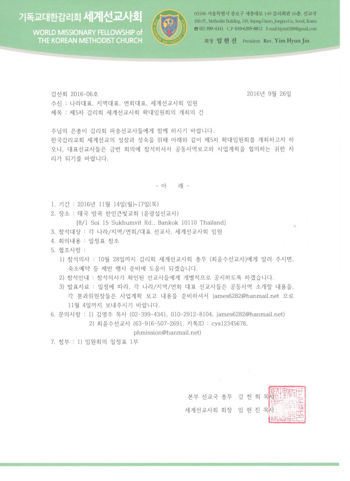 제5차 감리회 세계선교사회 확대임원회 개최 안내