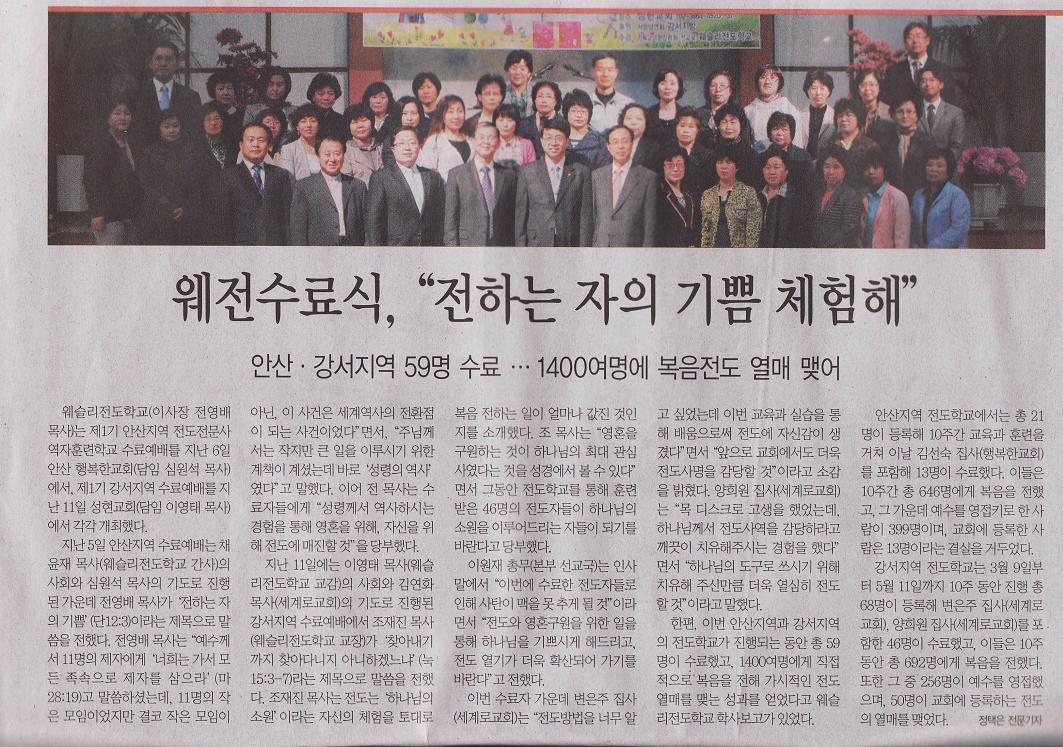 2010년 안산, 강서지역 웨슬리전도학교 기사 발췌