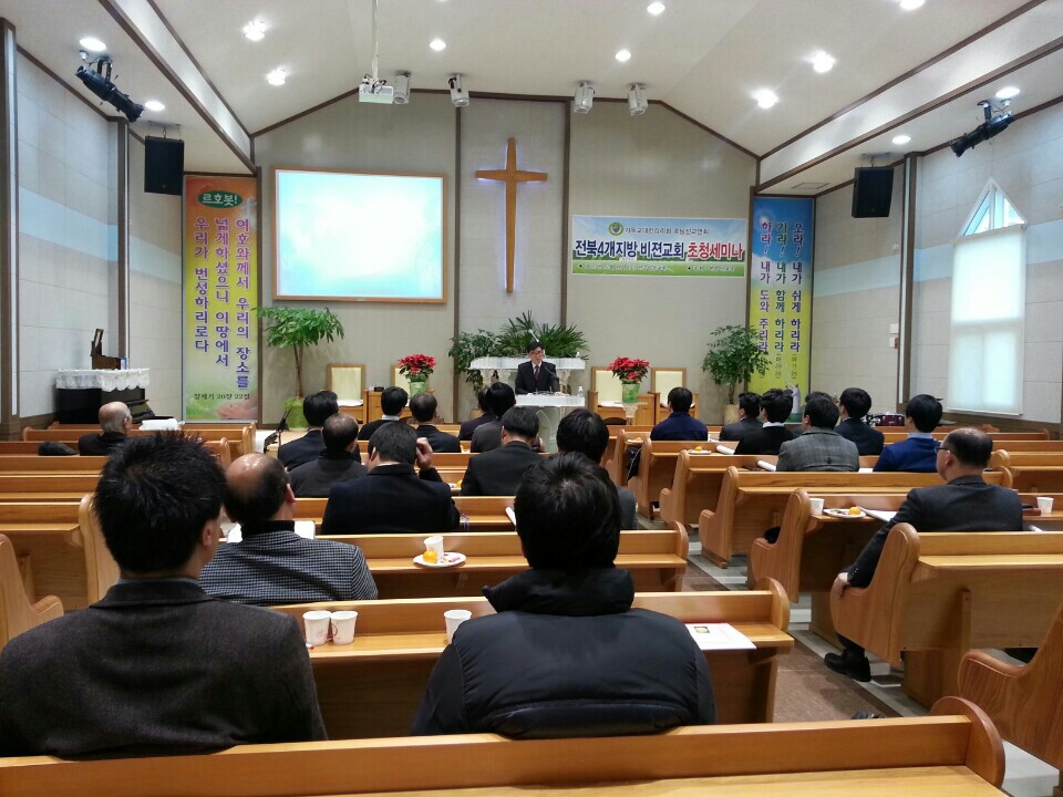 본부 선교국은 2013.12.11(수) 10:30~15:30. 전주 성음교회에서 호남선교연회 전북지역 4개지방의 20교회 목회자를 초청하여 세미나를 진행하였다. 원형수관리자와 각지방 감리사들도 함께 참여하여 은혜를 나누고 격려하였다. 세미나는 주제강연에 태동화목사, SISTER전도를 통한 교회학교 부흥 김성기목사, 결단의 시간 김진호 감독이 각각 강사로 나섰다. 참석자들은 큰 은혜를 받고 교회 부흥을 위해 헌신하기로 결단하는 시간이 되었다. 첨부파일 83.jpg
