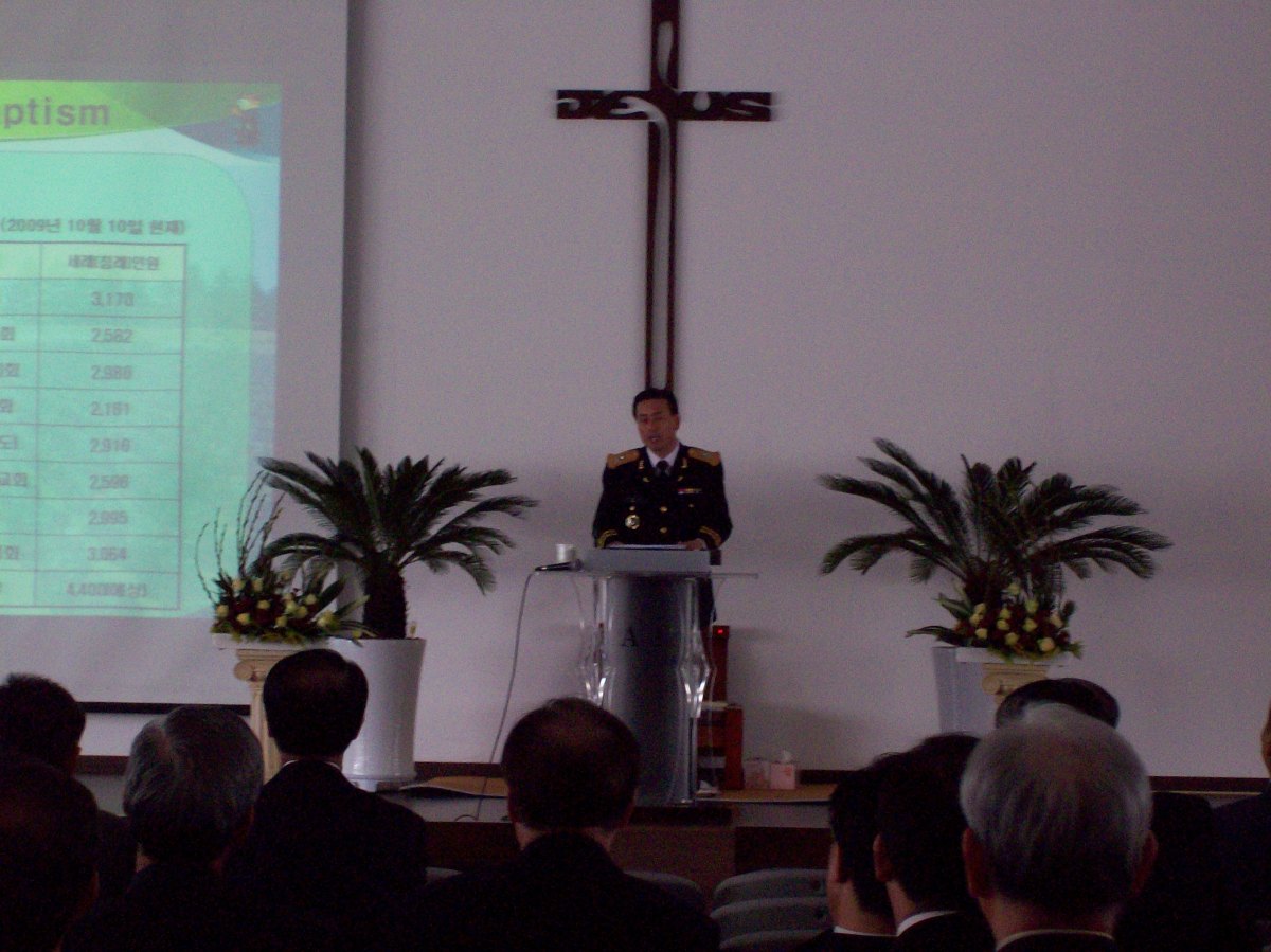 아래 사진은 윤용진군목의 예배 전 세례식 안내 및 보고 모습이고