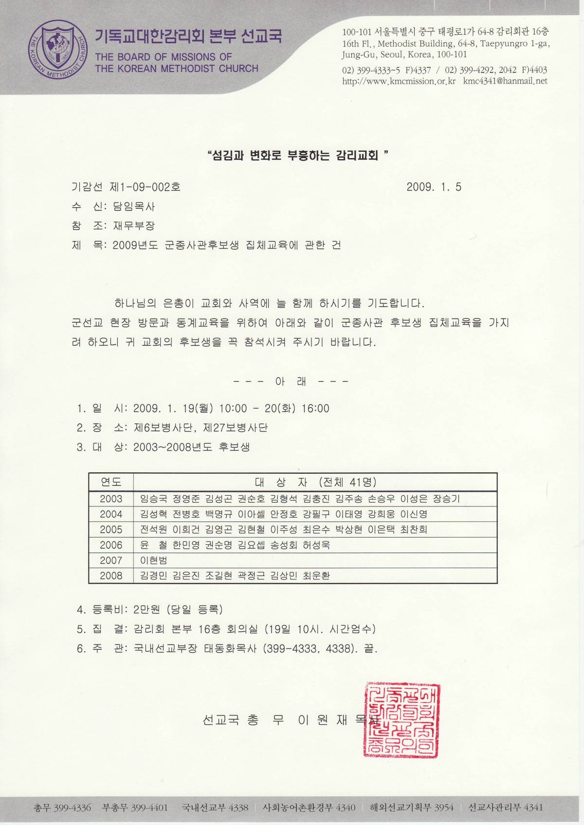 2009년도 군종사관후보생 집체교육을 안내해 드립니다.