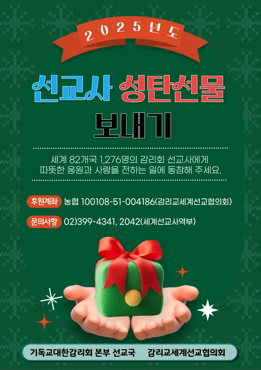 제 목 : 2025년 감리회 파송 선교사 성탄선물 보내기 후원요청