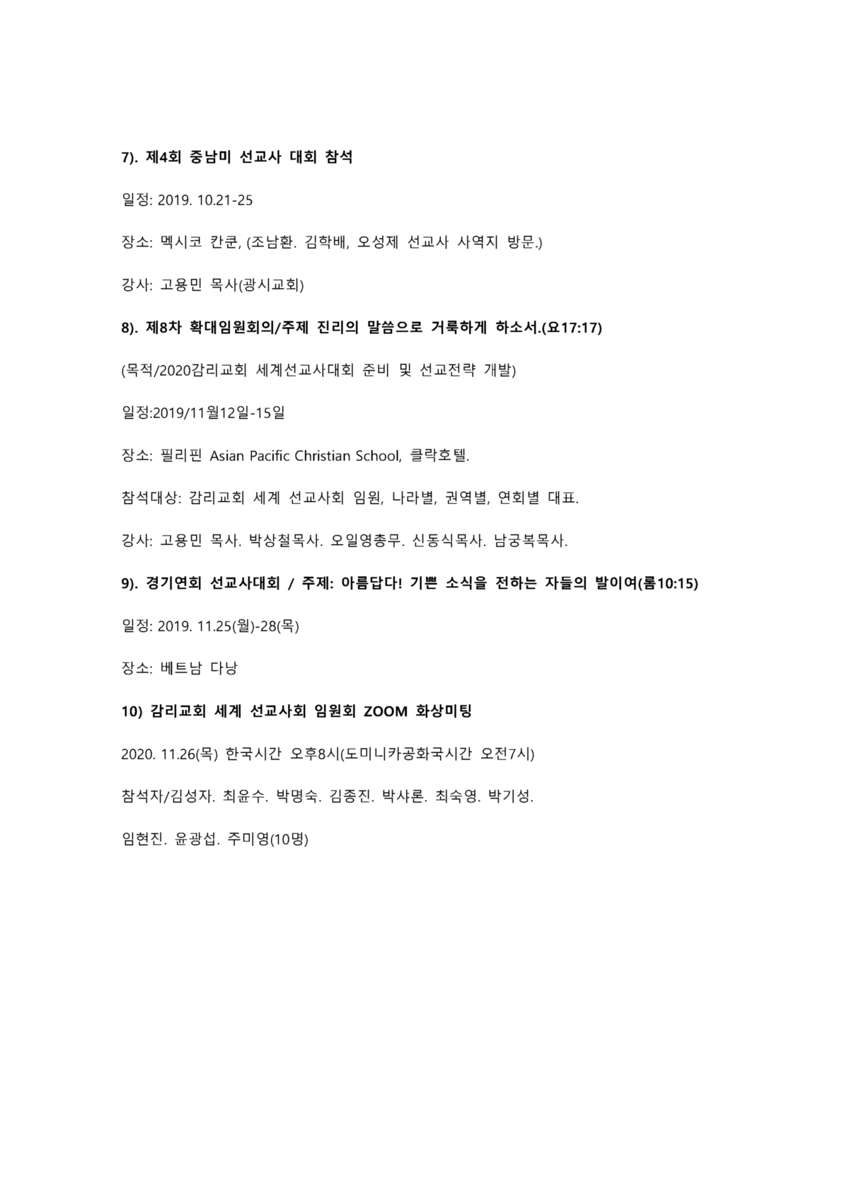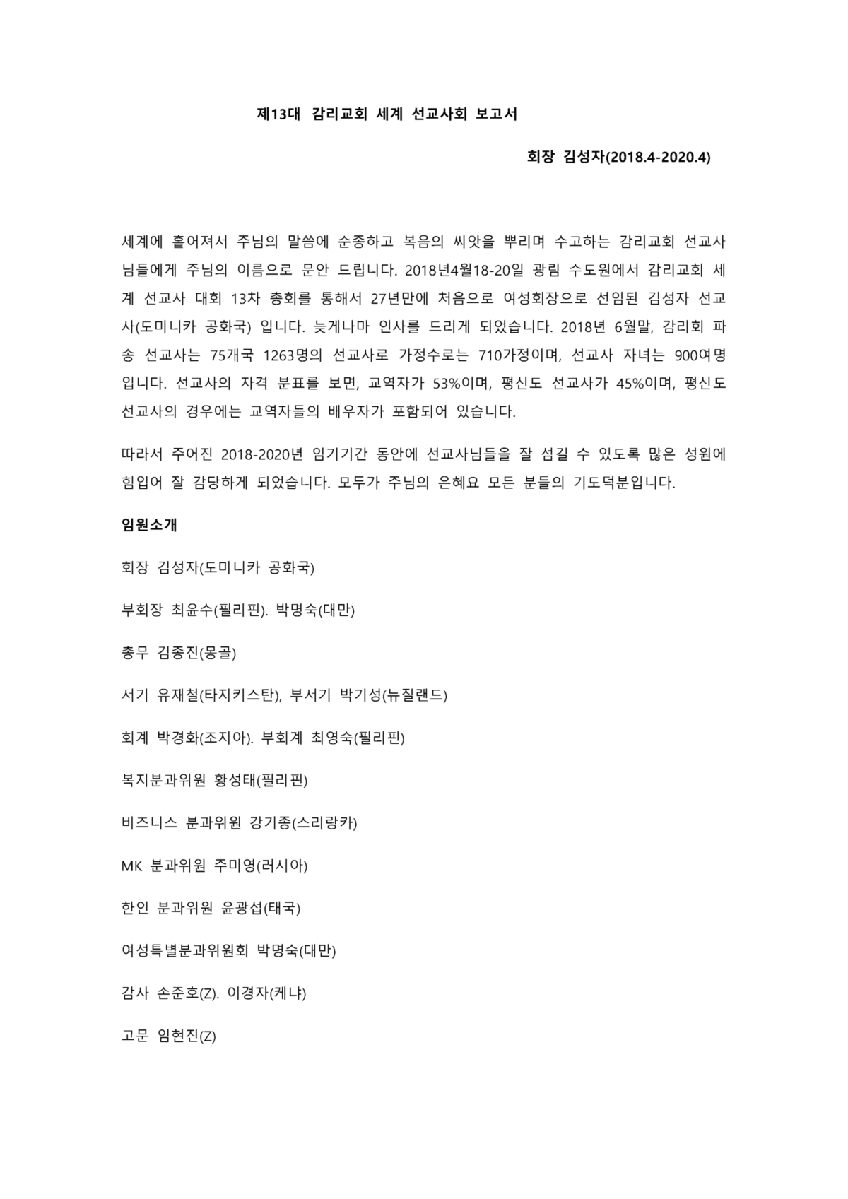 감리교회세계선교사회 회장(2019-2021) 보고서