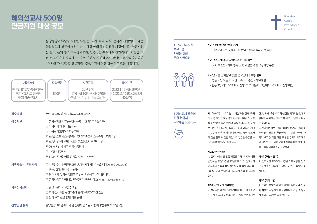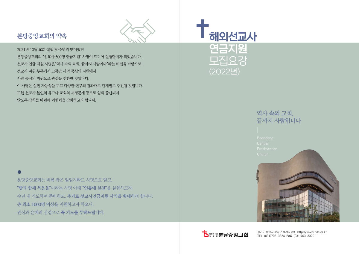 분당중앙교회 해외선교사 연금지원 모집요강 안내의 건