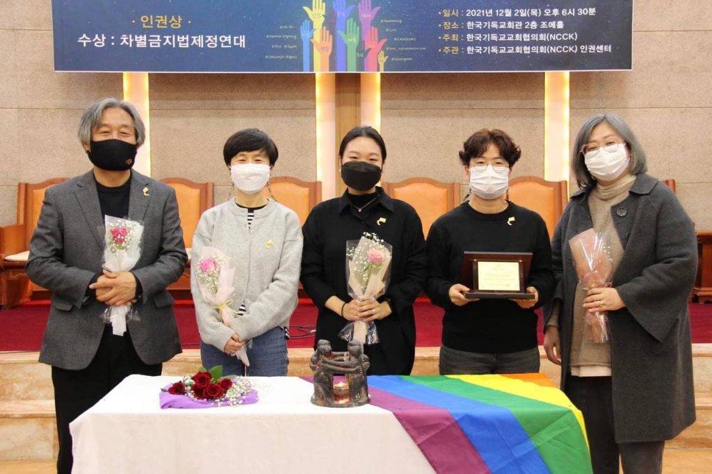 동성애를 확산시키고 동성혼을 합법화하여 창조질서를 무너뜨리고 결국 기독교를 파괴하는 것이 핵심 목적인 차별금지법을 막기 위해 한국교회는 눈물겨운 노력을 다하고 있는데 NCCK는 지난 2021년 도리어 차별금지법 제정운동을 하고 있는 단체에 상까지 주면서 잘하고 있다고 격려했습니다. 정말 기가 막히는 일이 아닐 수 없습니다.