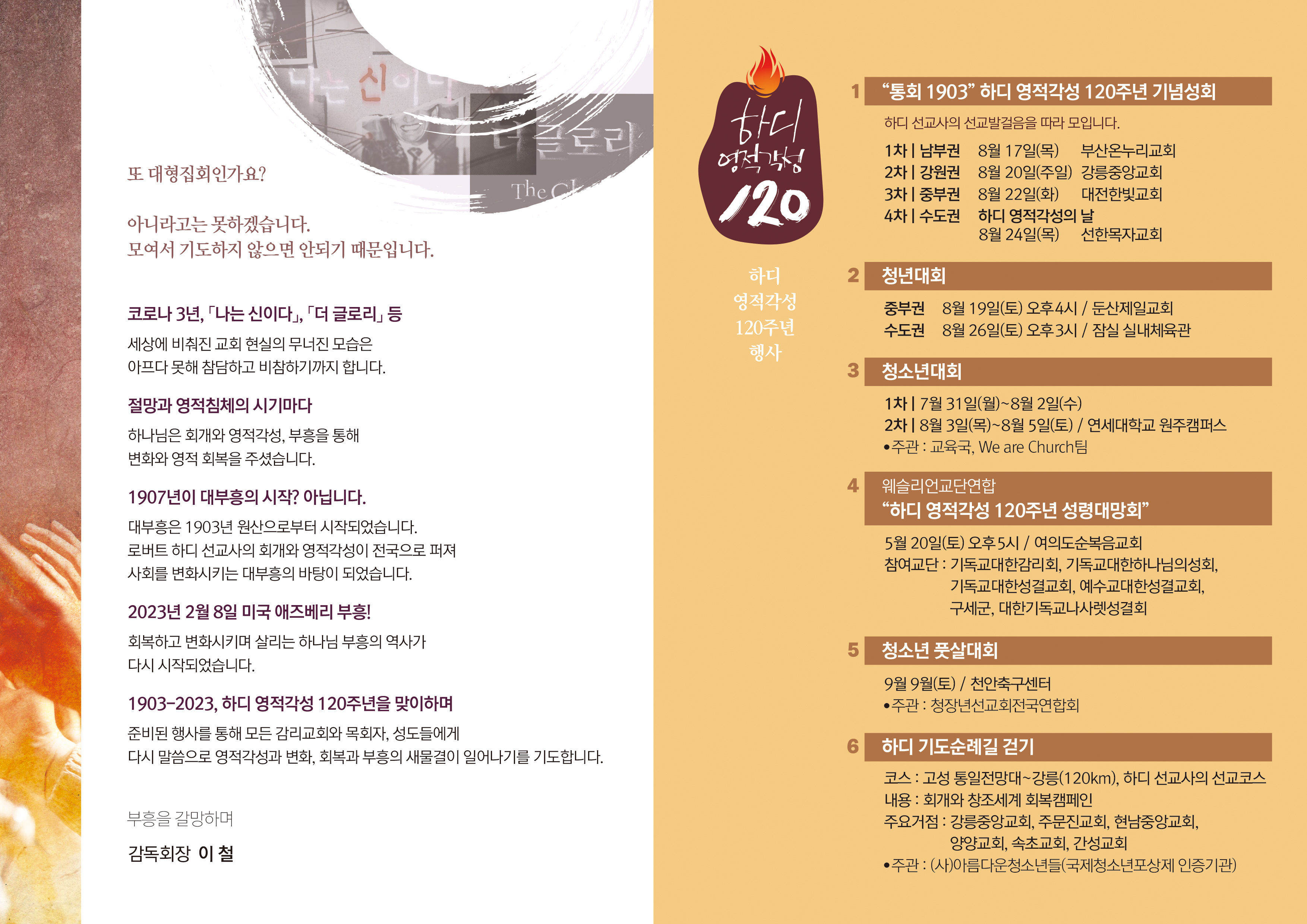 하디 영적각성 120주년 기념대회 홍보전단은 파일로 올려드립니다. 필요하시면 다운받아서 사용하시기 바랍니다.
