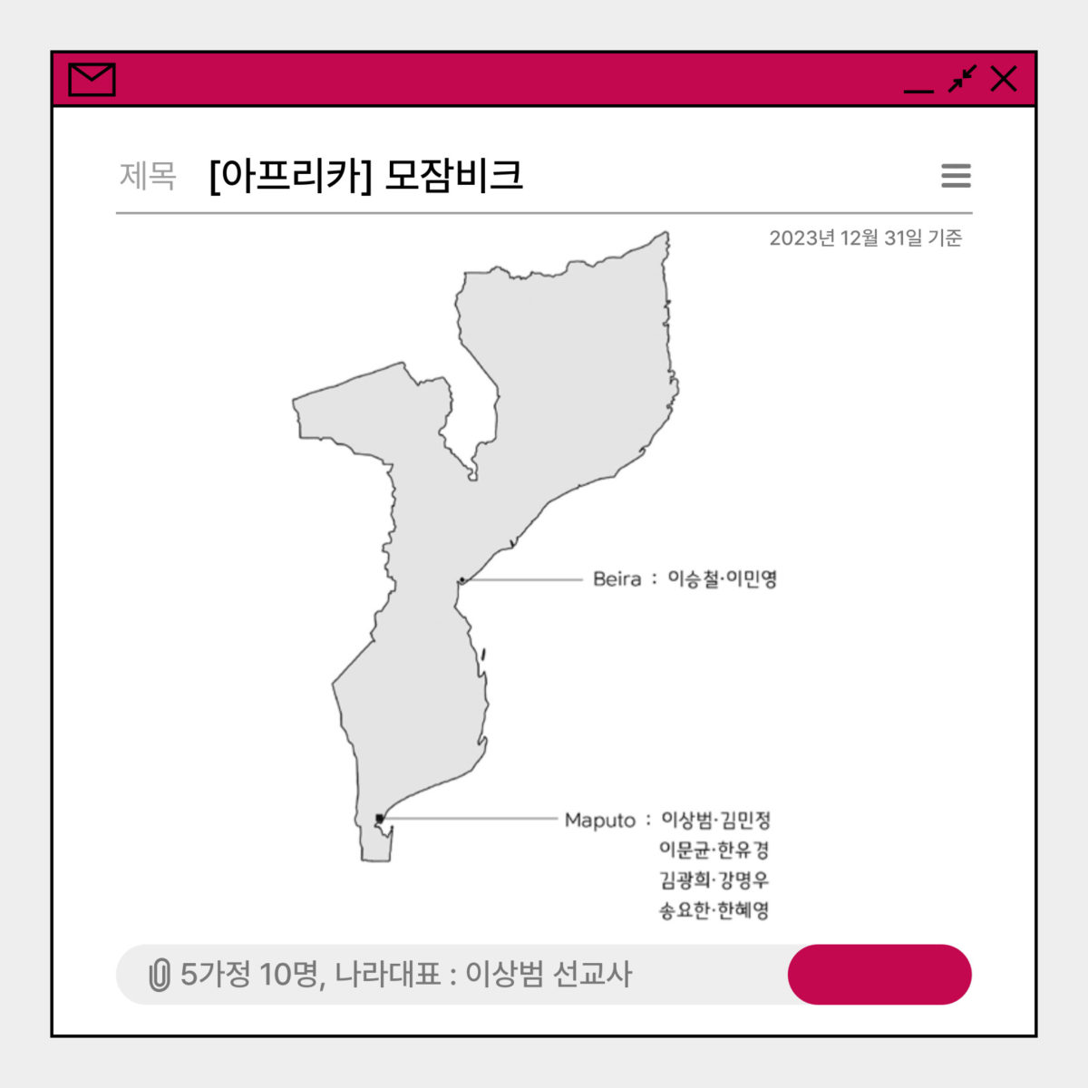 3. 2024년 10월에 모잠비크 대통령 선거가 평화롭게 진행되게 하시고, 하나님을 경외하는 지도자가 선출되도록