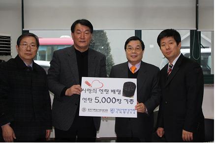 기독교 대한감리회 사회평신도국(총무: 엄마리 장로)은 한국기독교사회봉사회(총무: 김일환 목사)와 연계하여 2010년 2월 8일 월요일 오후 2시에 경기도 남양주시 화도읍 녹촌리 495-29(tel : 031-594-5821)에 위치한 “샬롬의 집”에 월동용 연탄 5,000여장을 전달했다.