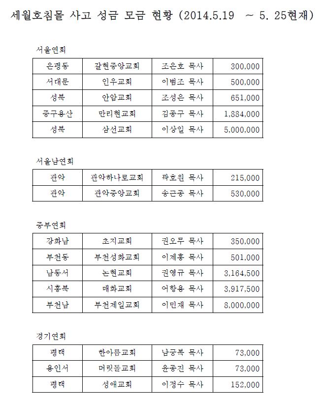 세월호 침몰사고돕기 성금 현황4(~5.25)