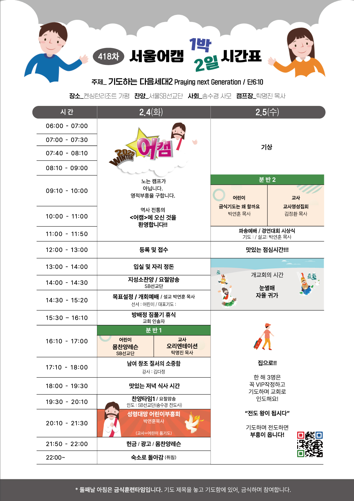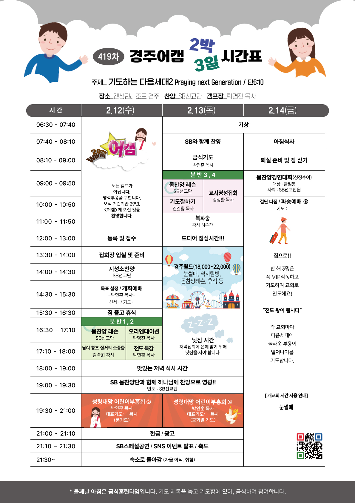 겨울 어린이은혜캠프 경주, 수도권, 화순