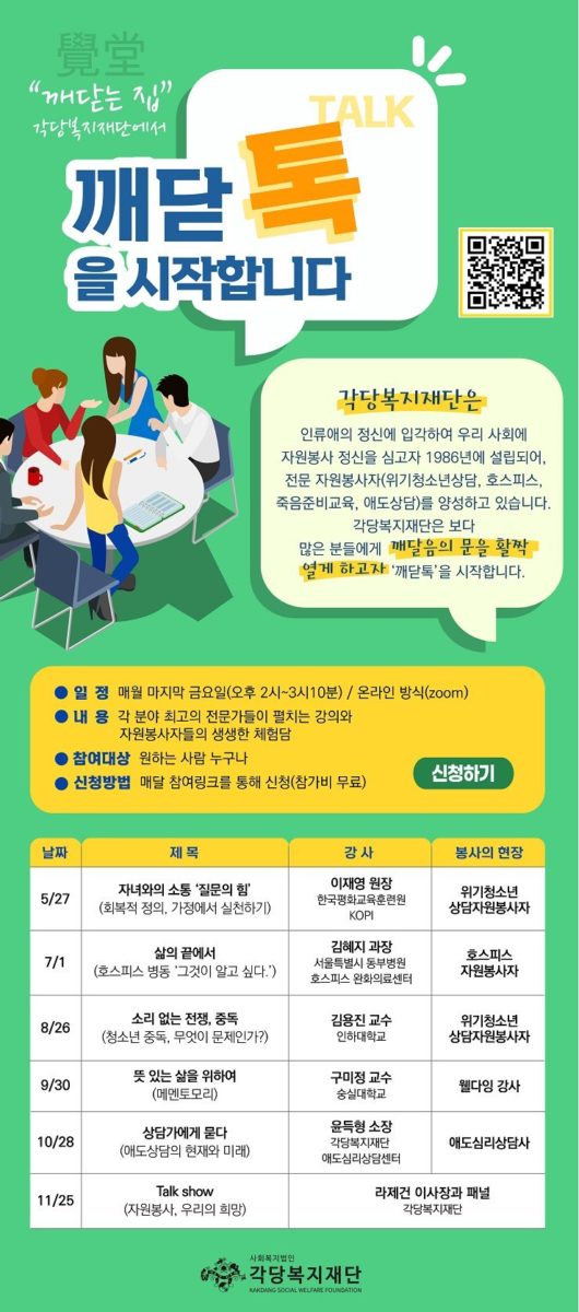 각당복지재단 '깨닫톡' 공개강좌 안내합니다~