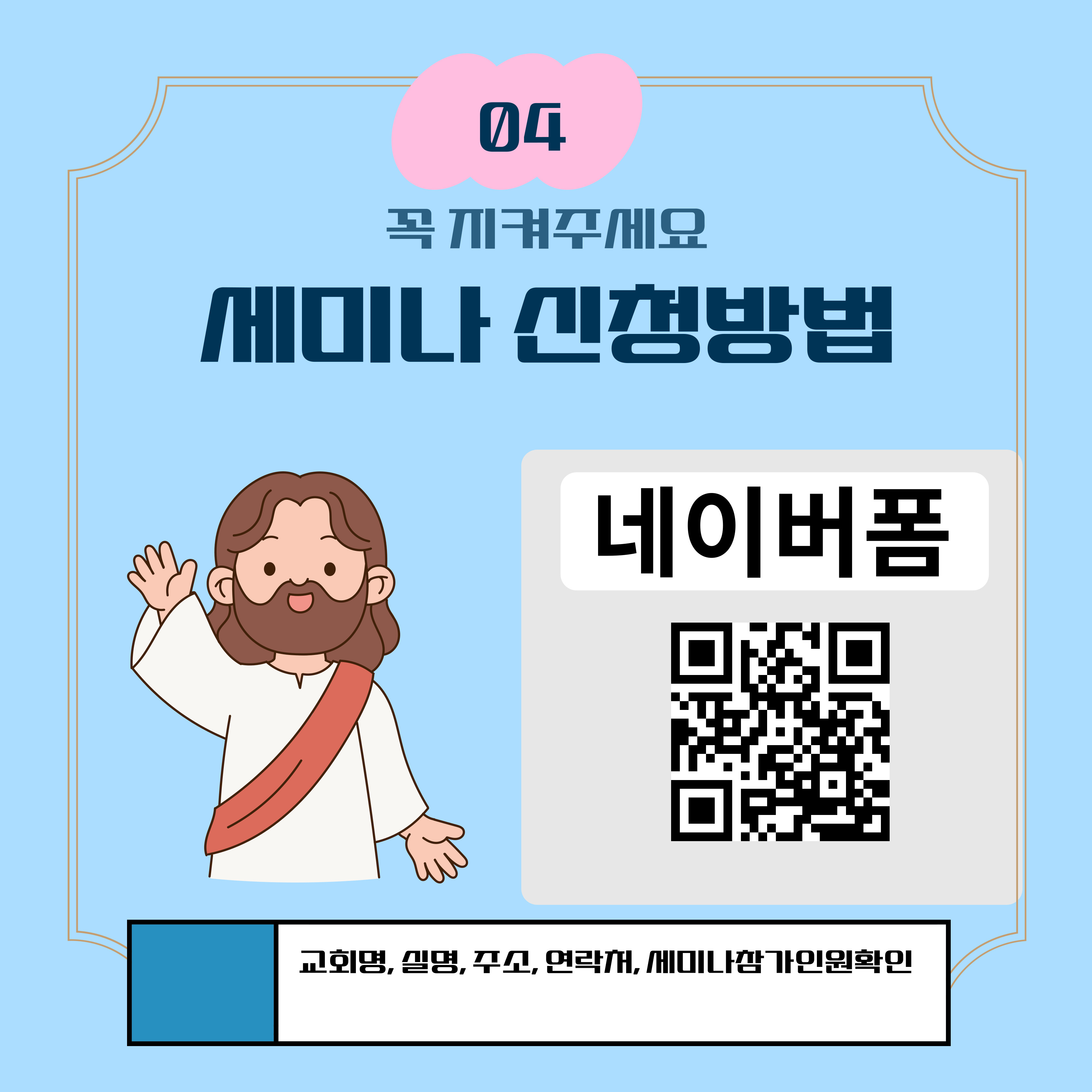 - 세미나신청마감일? 2월 15일(주일)까지 *실습훈련으로 부득이하게 세미나인원이 조기 마감됩니다*