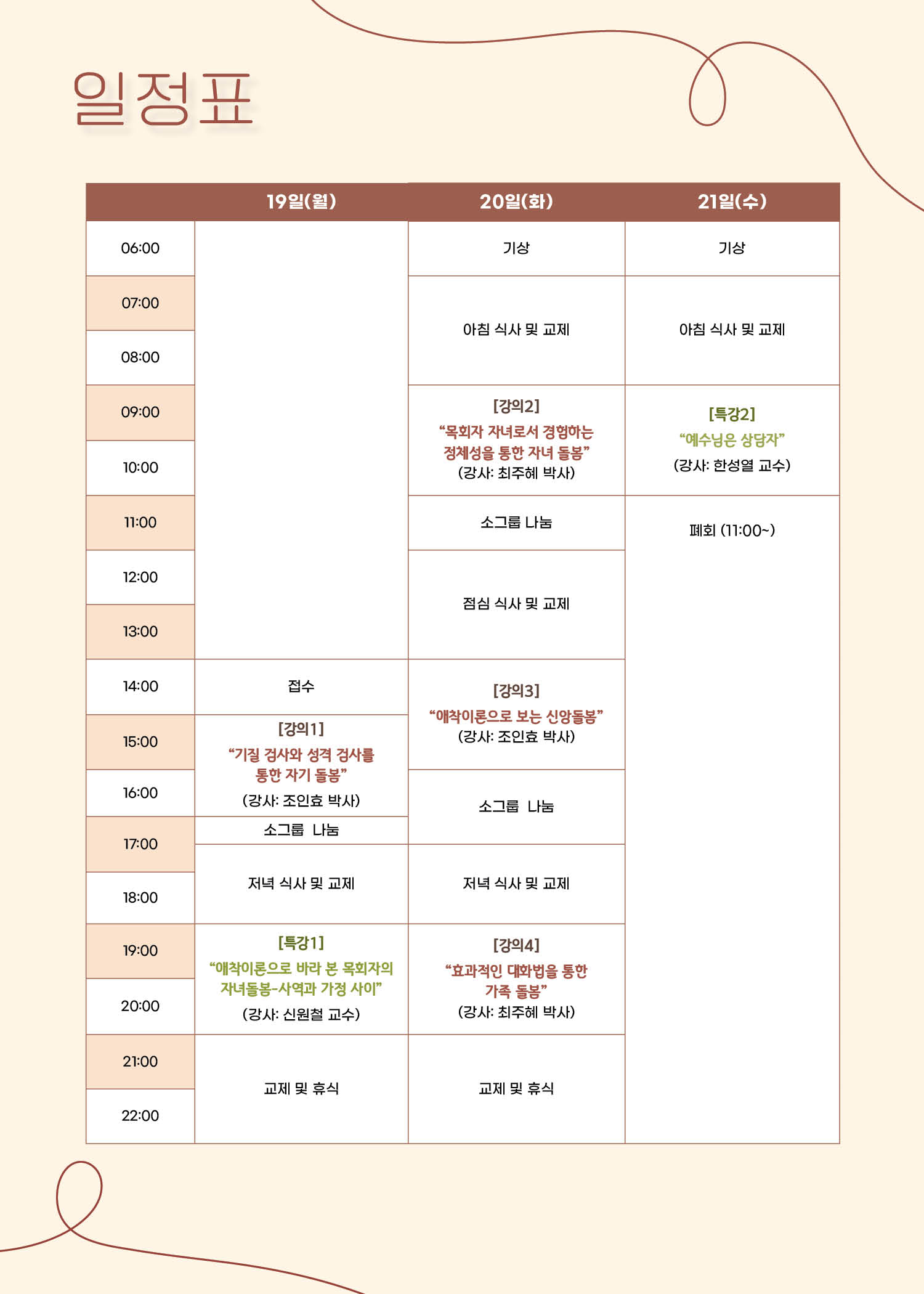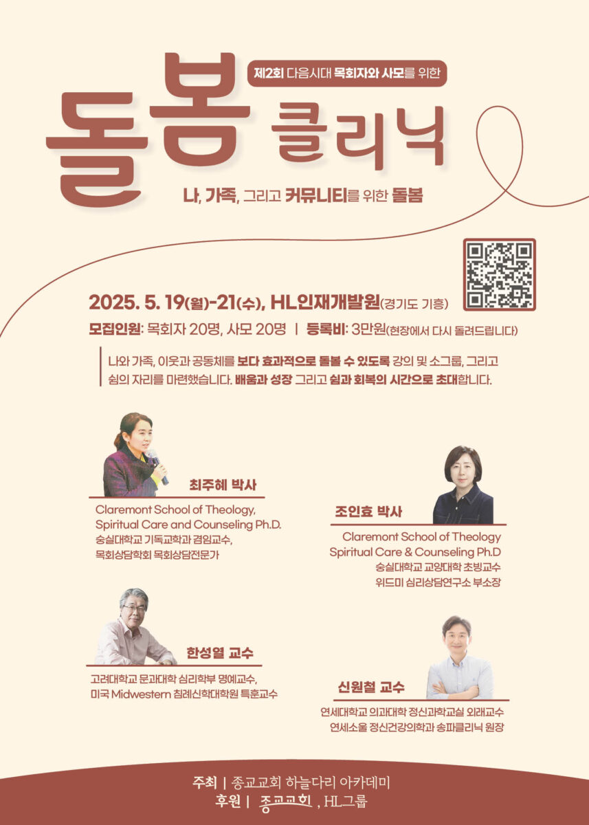 목회 현장에서 많은 필요를 느낍니다. ‘ 나 자신’을 돌봄, ‘자녀’를 돌봄, ‘이웃’을 돌봄,