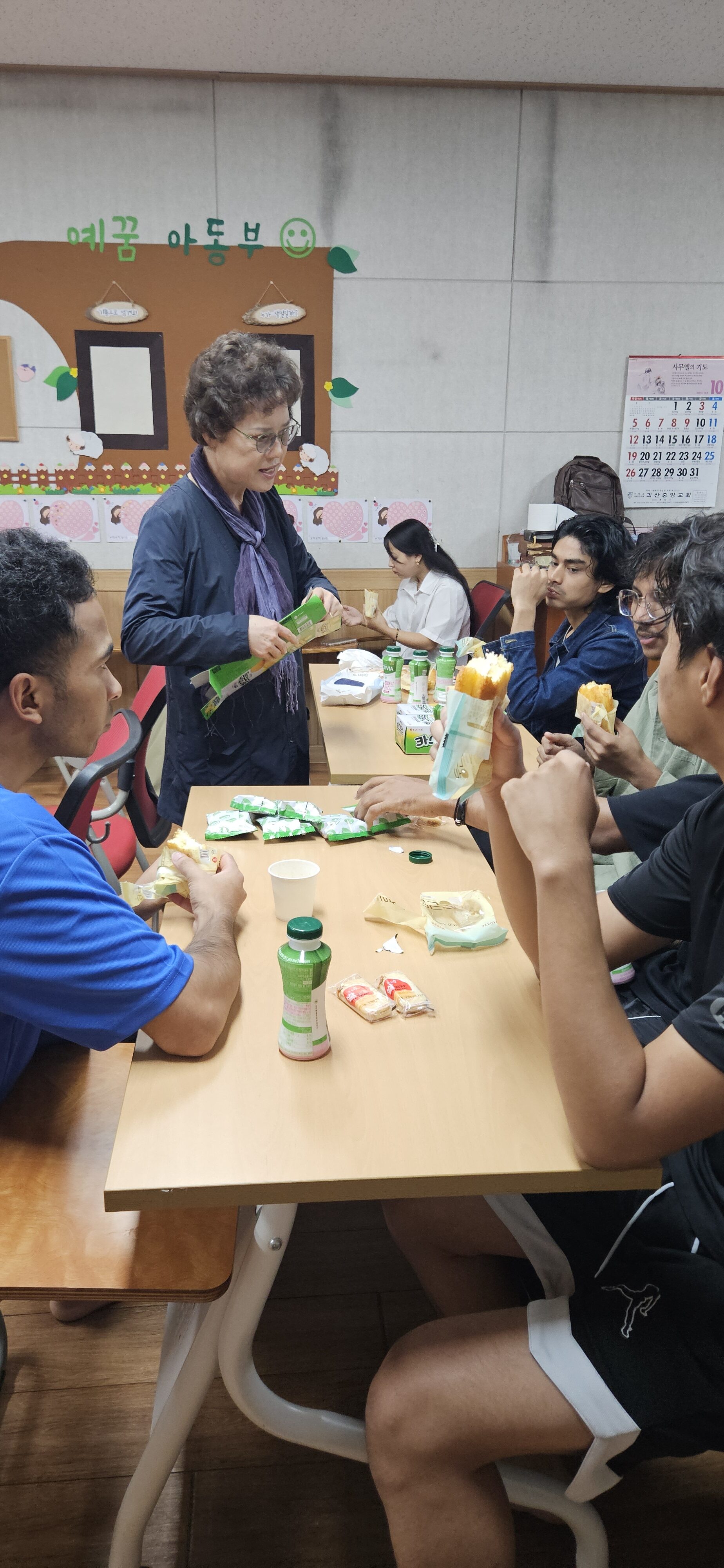맛있는 간식을 나누고 주일 운동회 준비 용품을 가져다 놓고